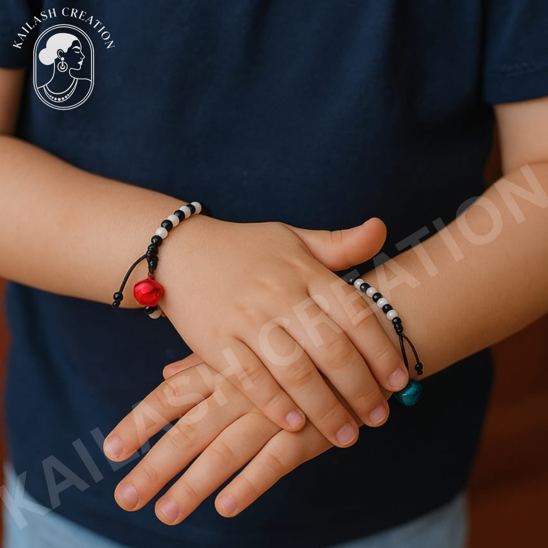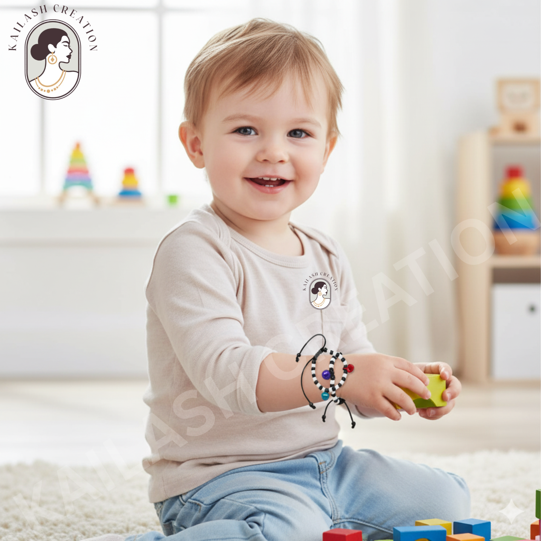 Adjustable Black & White Beads Thread with Multicolor Ghungroo Baby Nazariya Bracelets