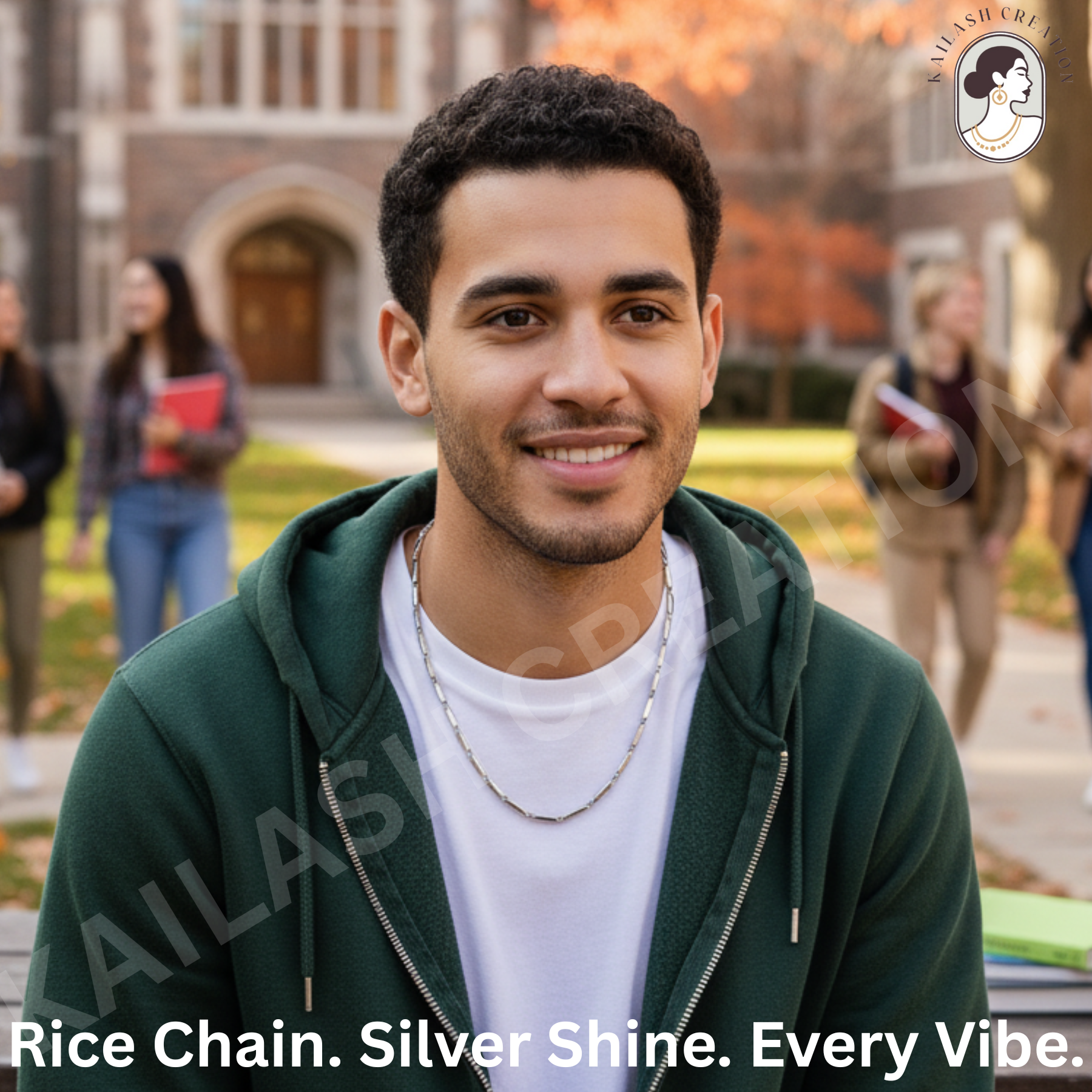 Upgrade your everyday style with the Kailash Creation Stainless Steel Rice Chain – a perfect blend of class, comfort, and durability, made for those who love refined and modern jewellery.