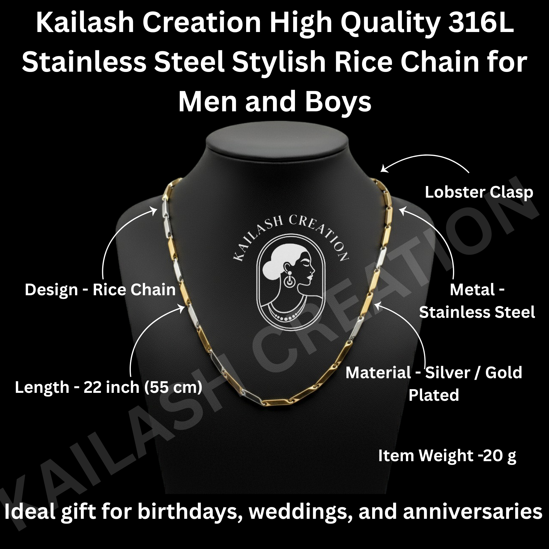 Kailash Creation 316L Stainless Steel Stylish Rice Chain – Dual Tone Silver & Gold