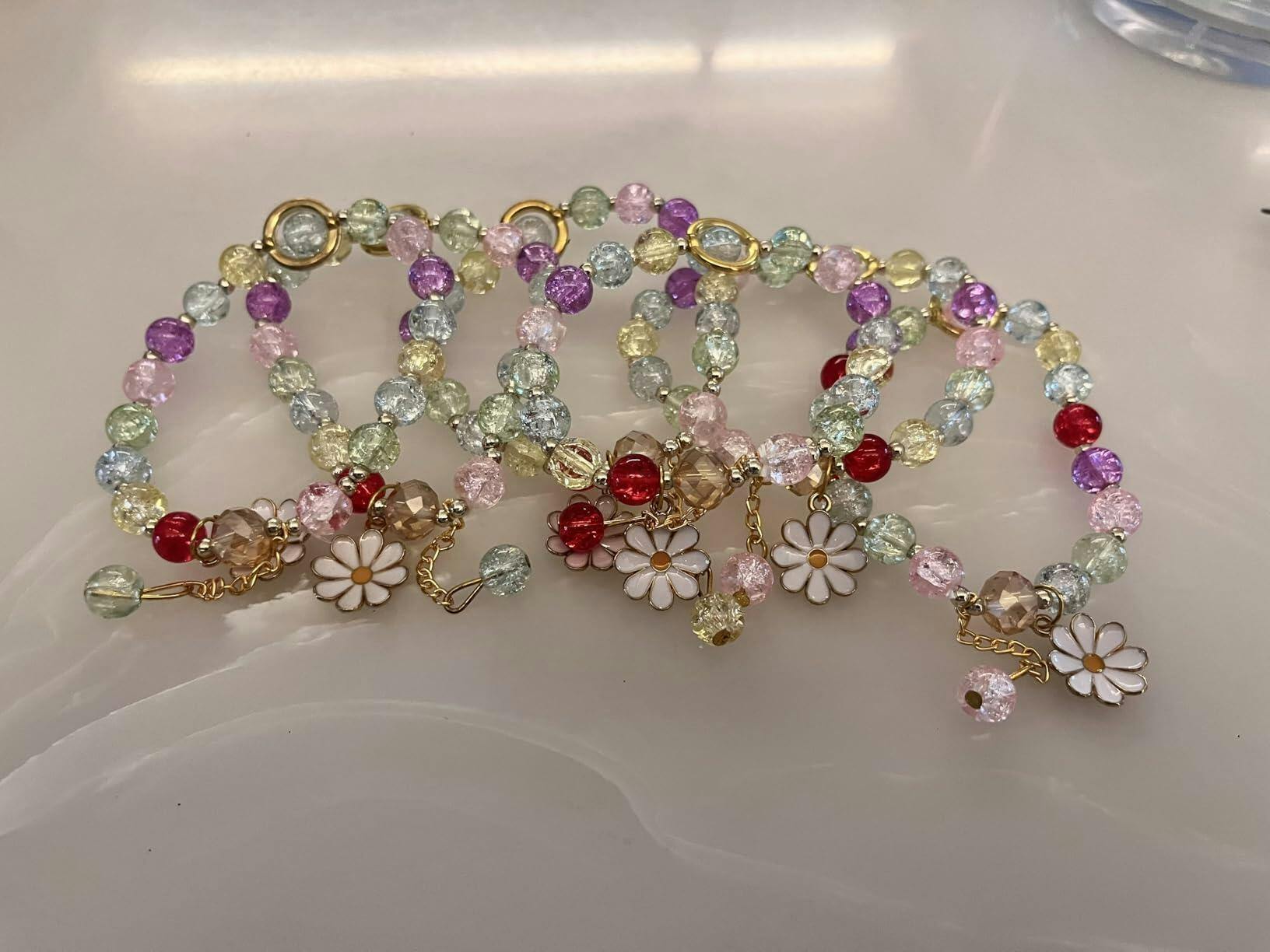 🌸 Stylish & Colorful Design: A trendy combination of pastel pink, blue, yellow, green, and white beads, finished with a cute floral charm—perfect for stylish bracelets for women and girls.