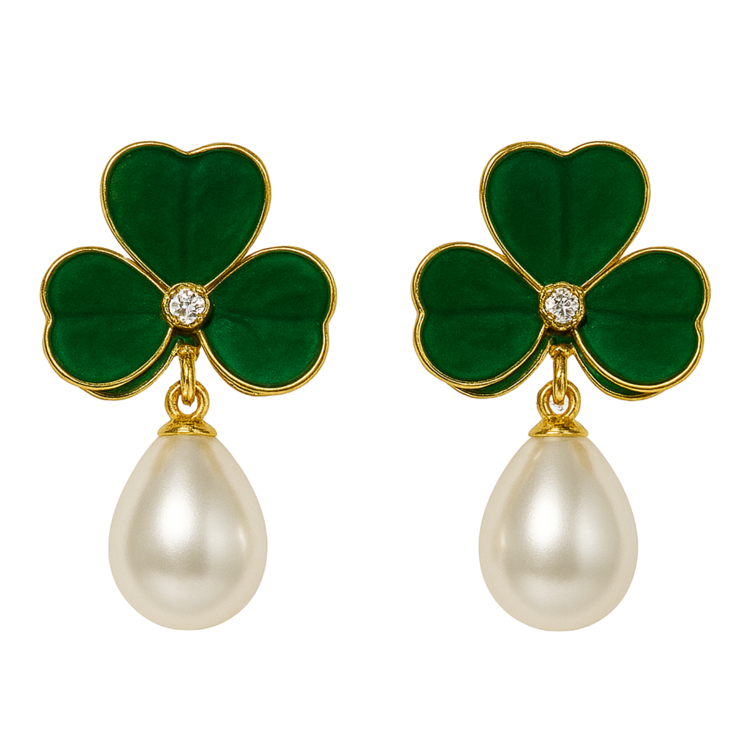 Enamel chic 3 petal clover Leaf Drop Earrings with Faux Pearl