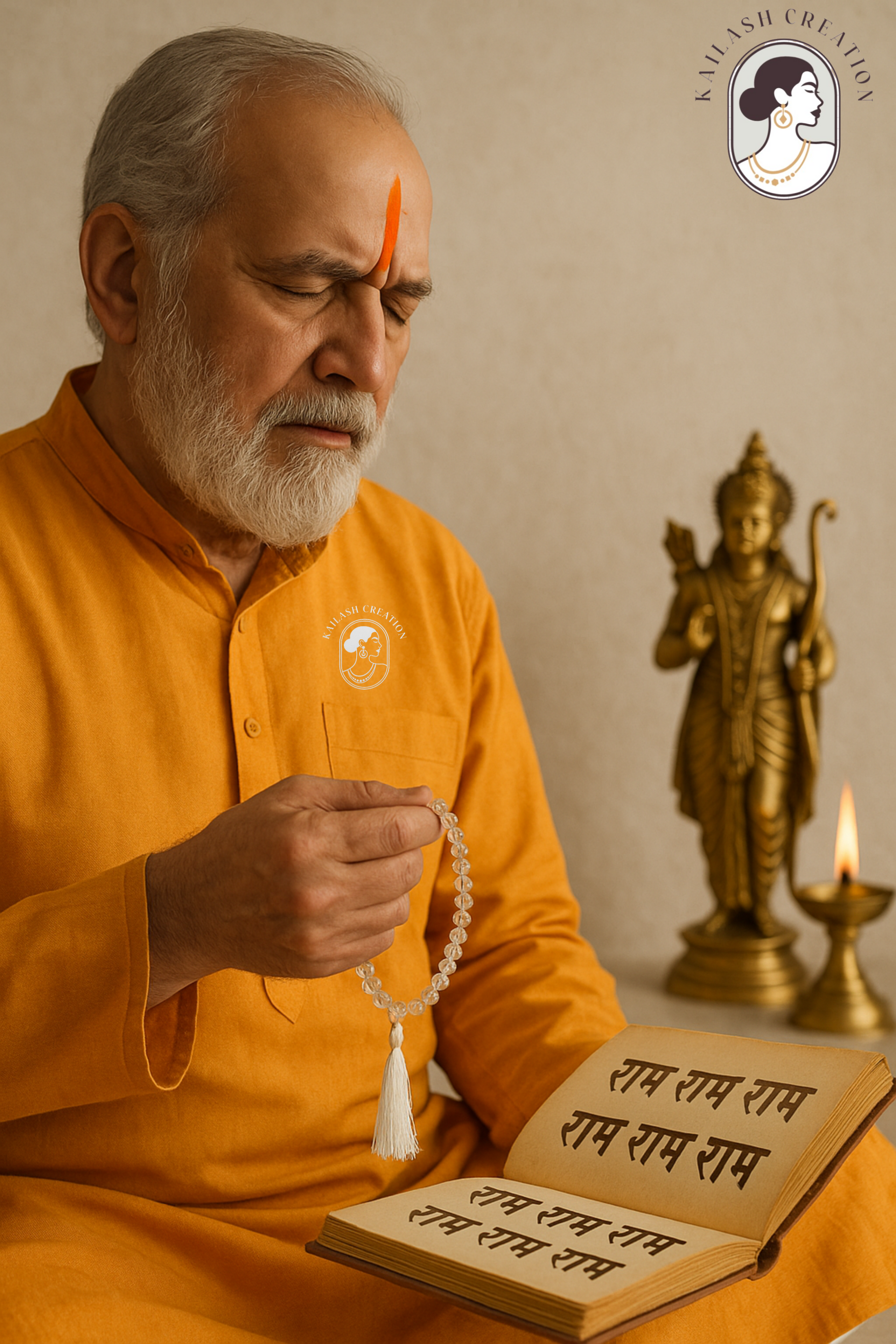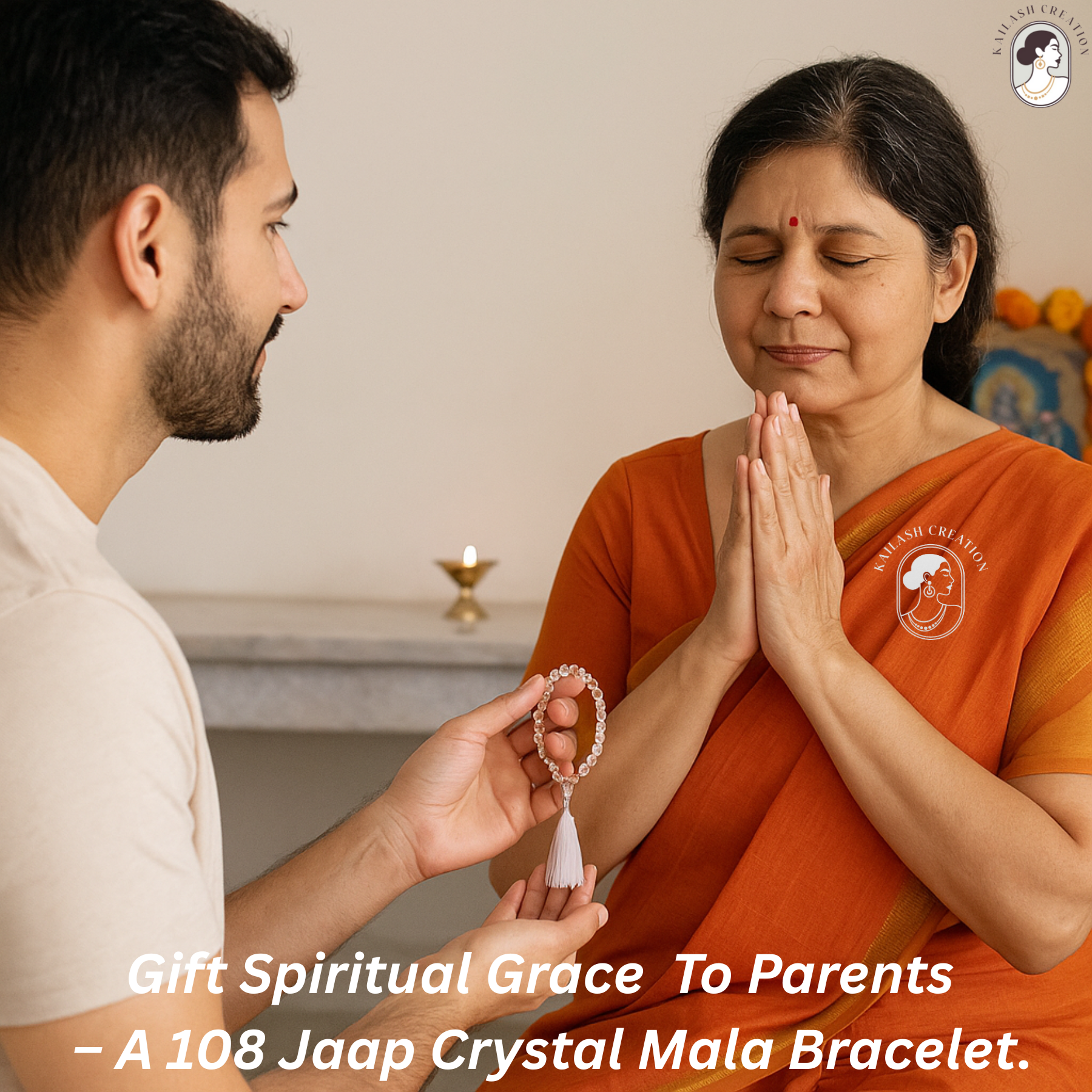 Experience the divine blend of spirituality and style with the Crystal Quartz Elastic Japa Mala Bracelet from Kailash Creation. Made with 27+1 faceted crystal beads, this mala is ideal for Ram Naam Jaap, meditation, prayer, and daily wear.