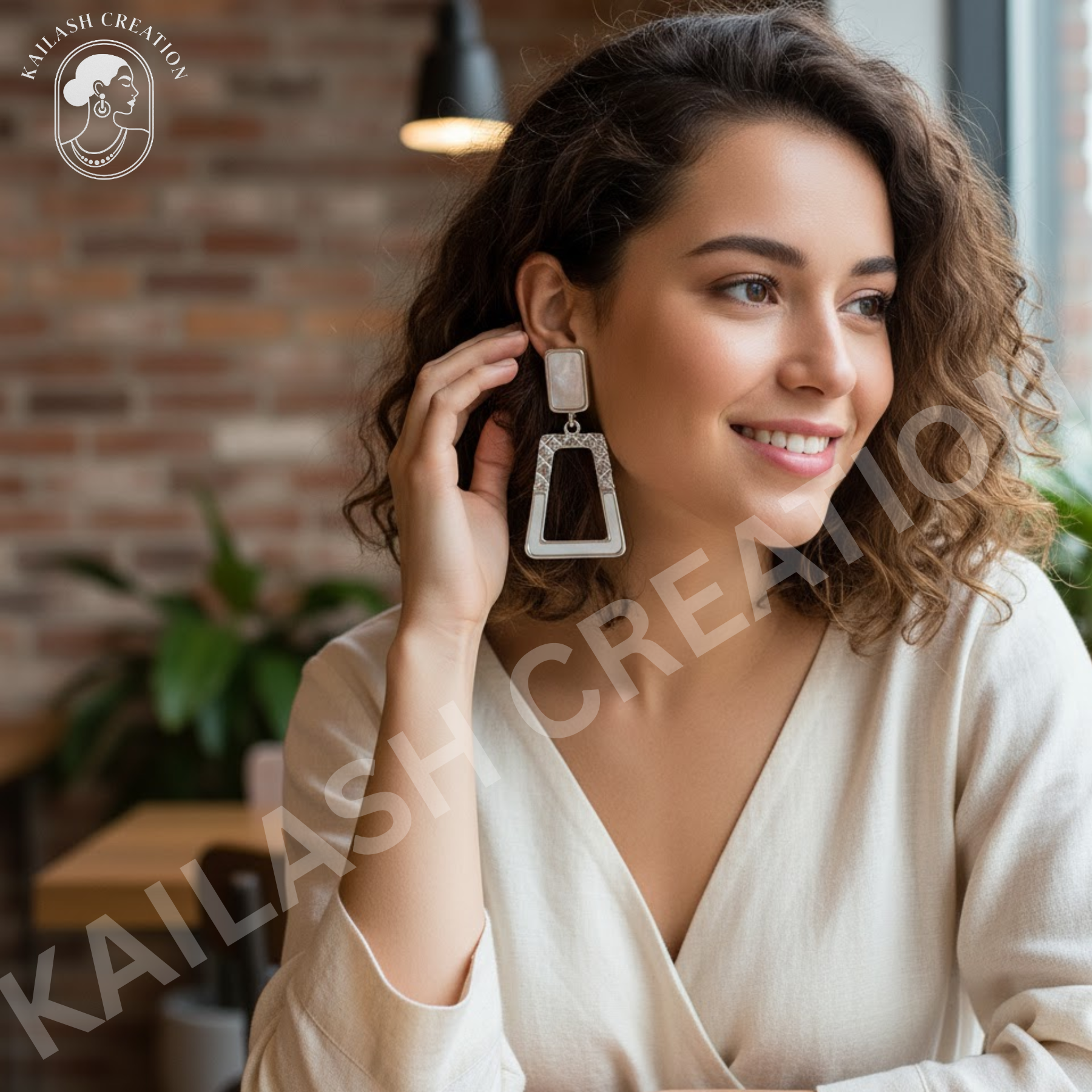 Minimalist White Cutout Geometric Dangle Earrings for Girls & Women Stylish