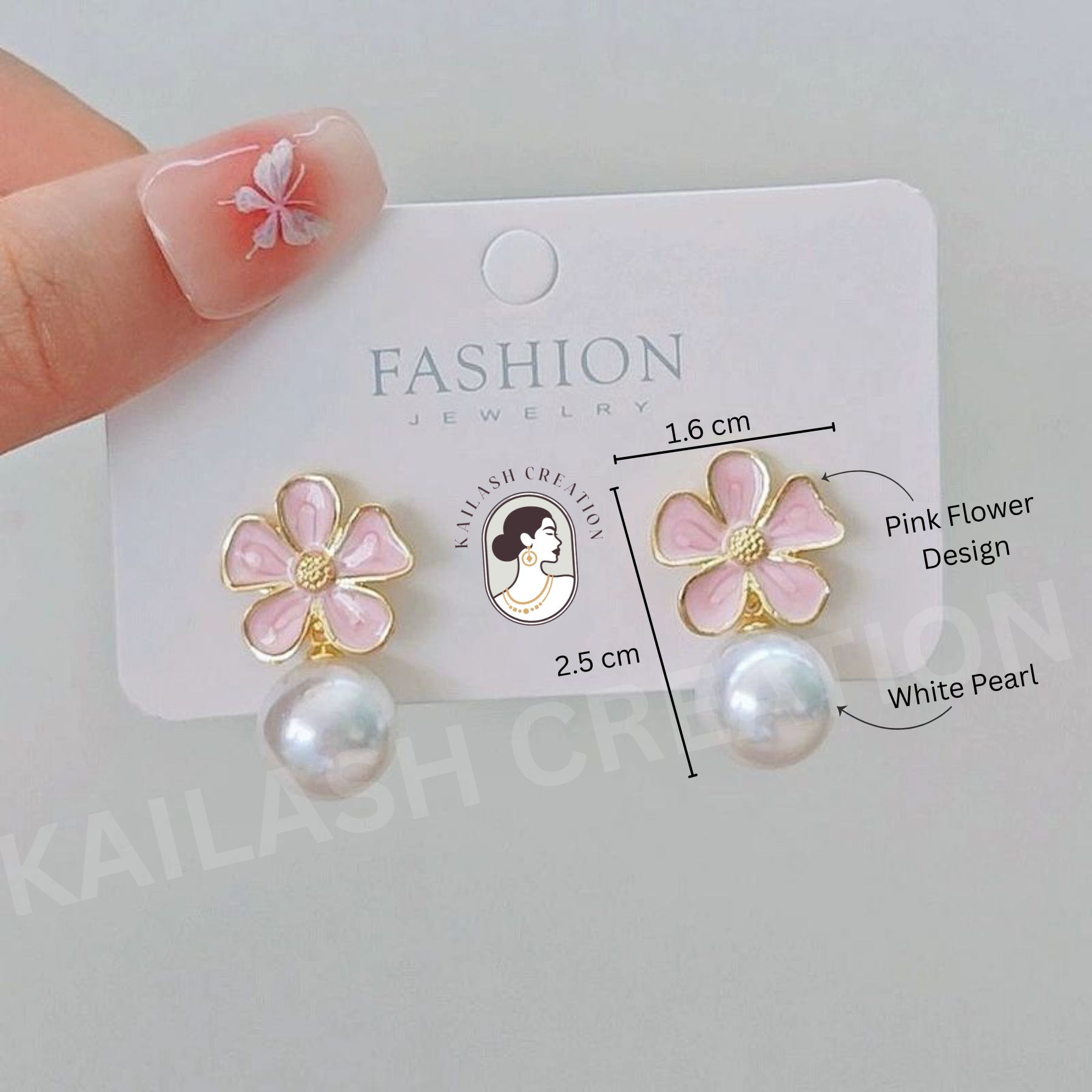 A smooth, white pearl drop hangs below the flower, creating a total earring height of 3 cm. This balanced length ensures the earrings are noticeable yet elegant, adding sophistication and charm to your ensemble.