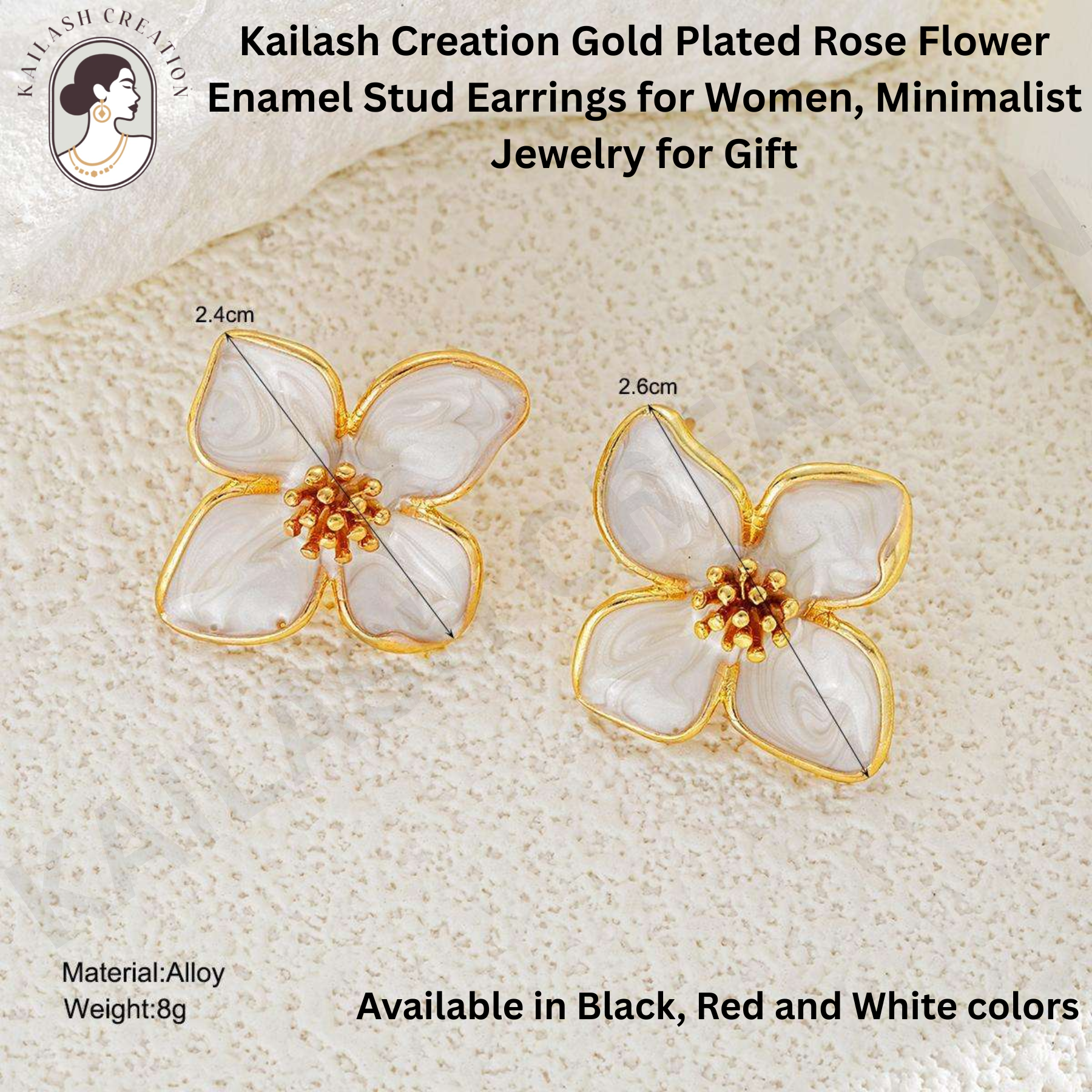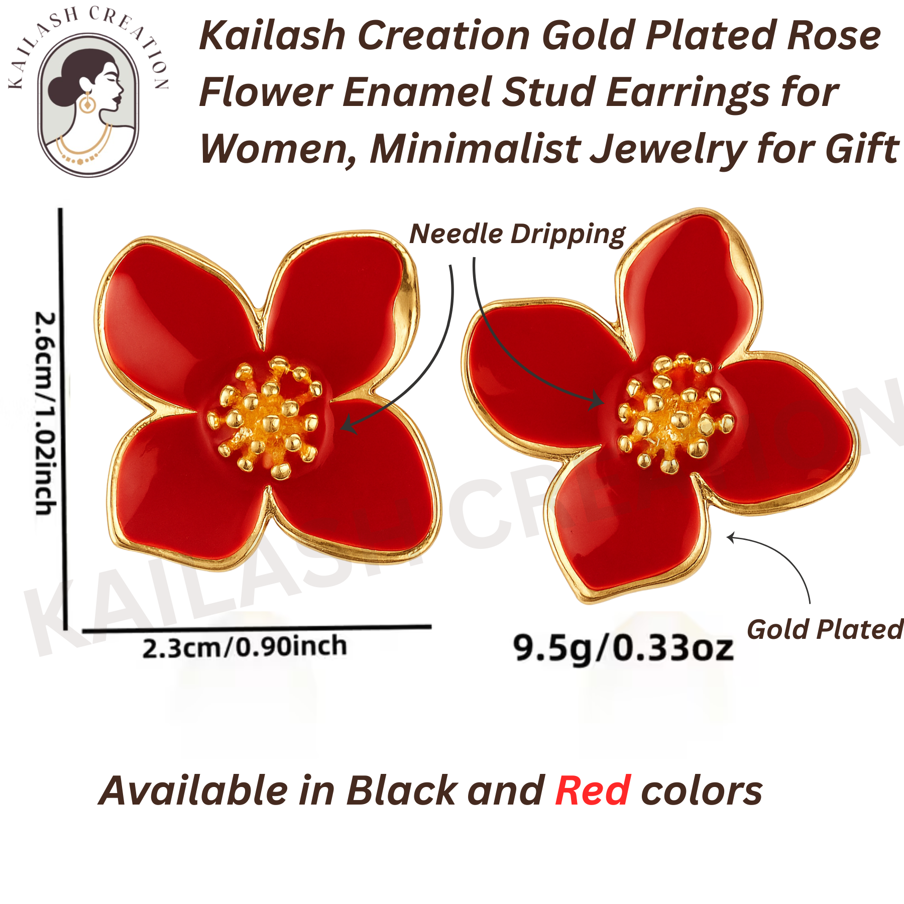 Kailash Creation Gold Plated Rose Hibiscus Enamel Stud Earrings