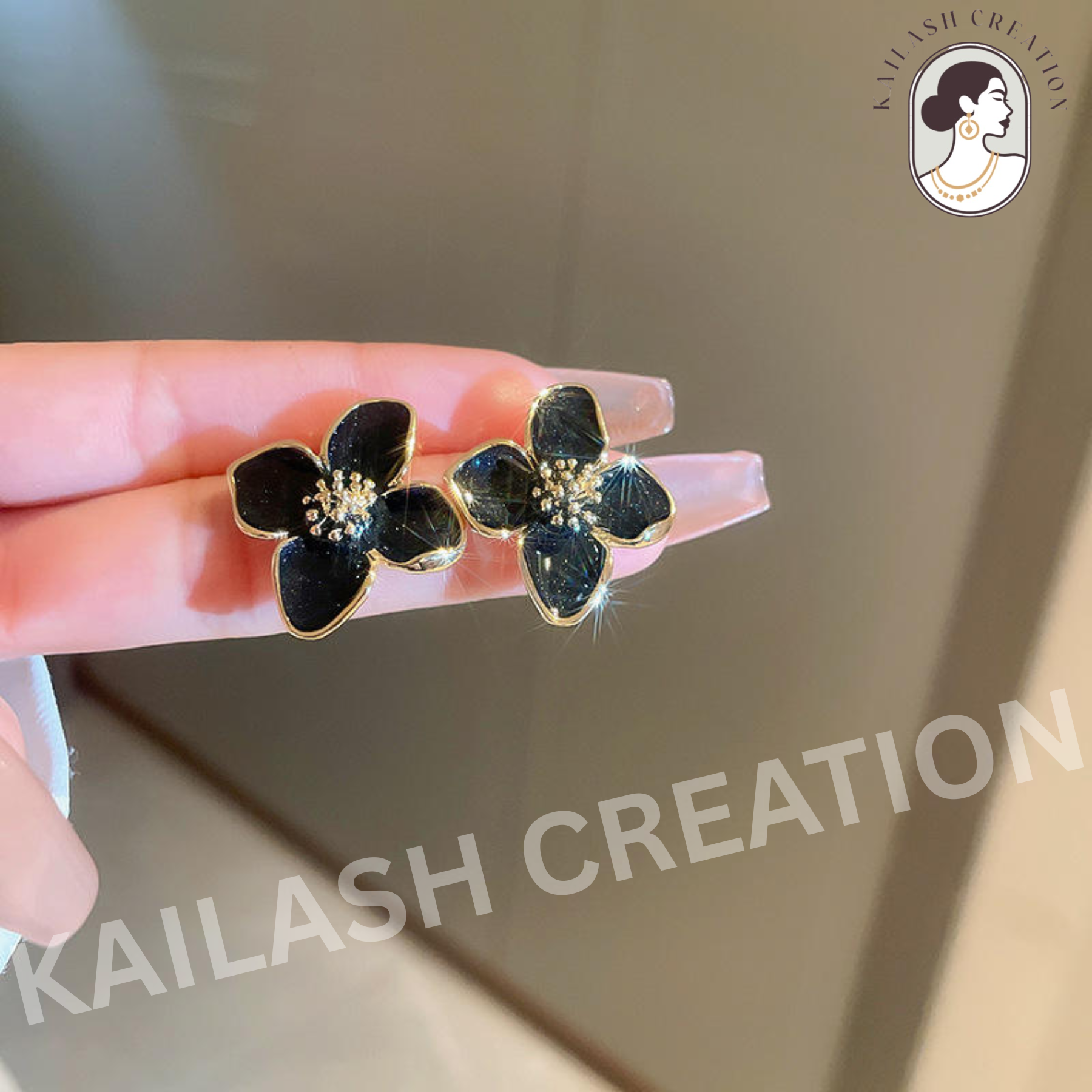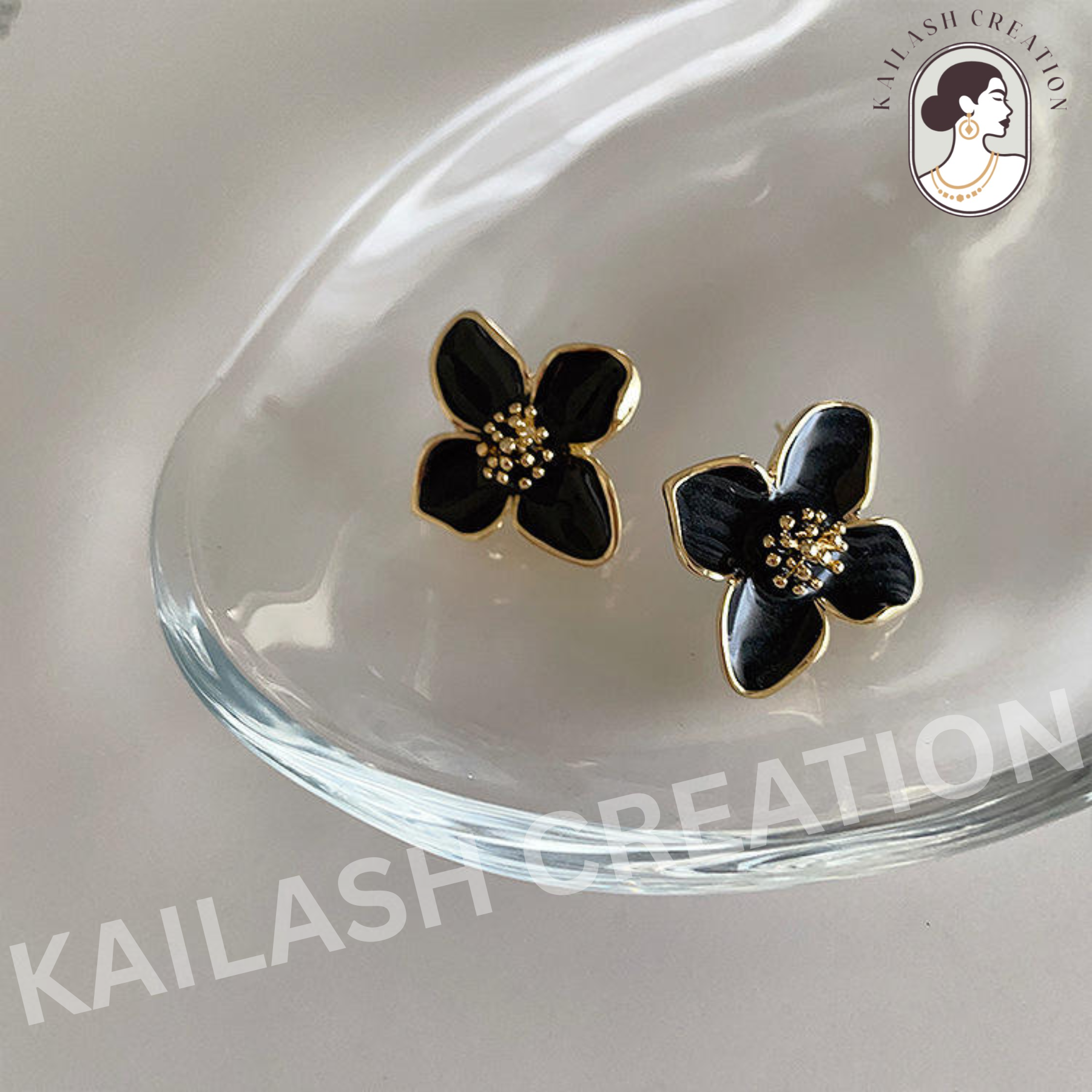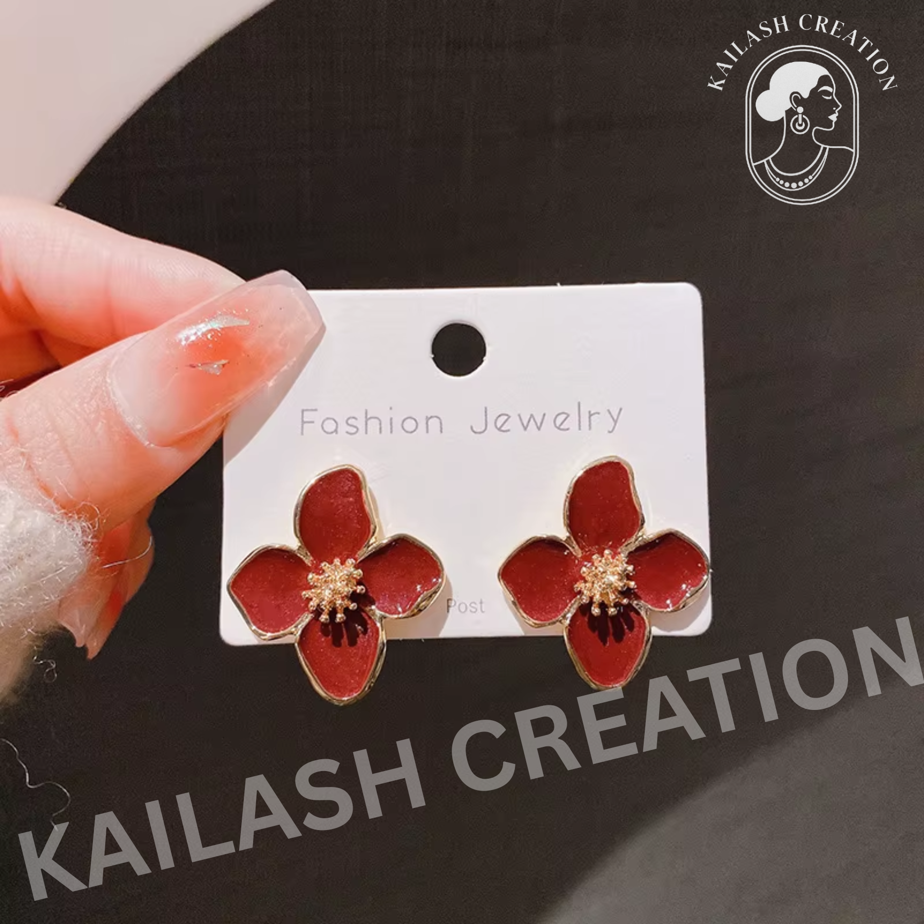 These stylish earrings for women combine modern elegance with traditional charm. Designed in a rose hibiscus flower shape, they are available in two colors - Red and Black, perfect for everyday wear and gifting.