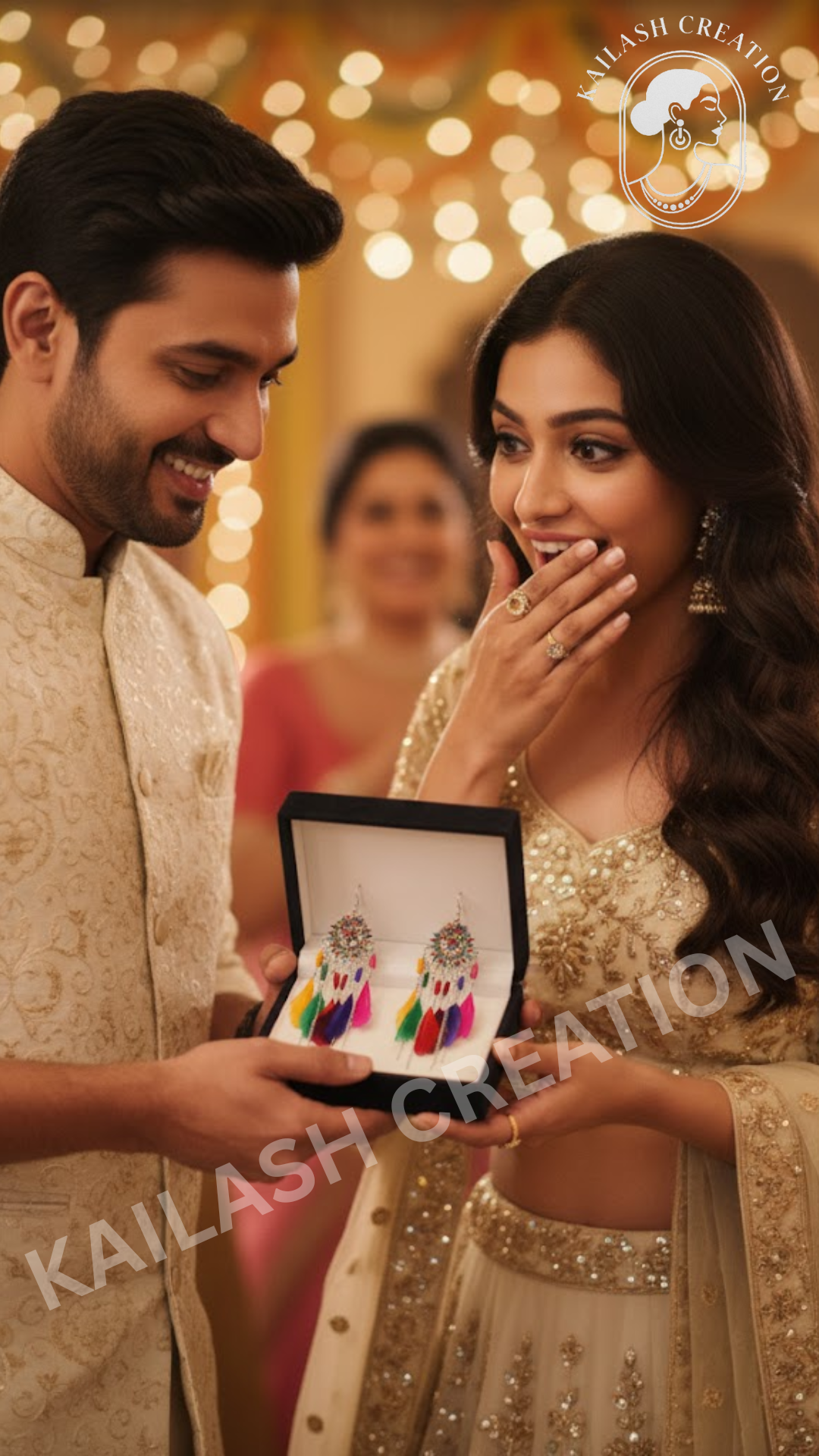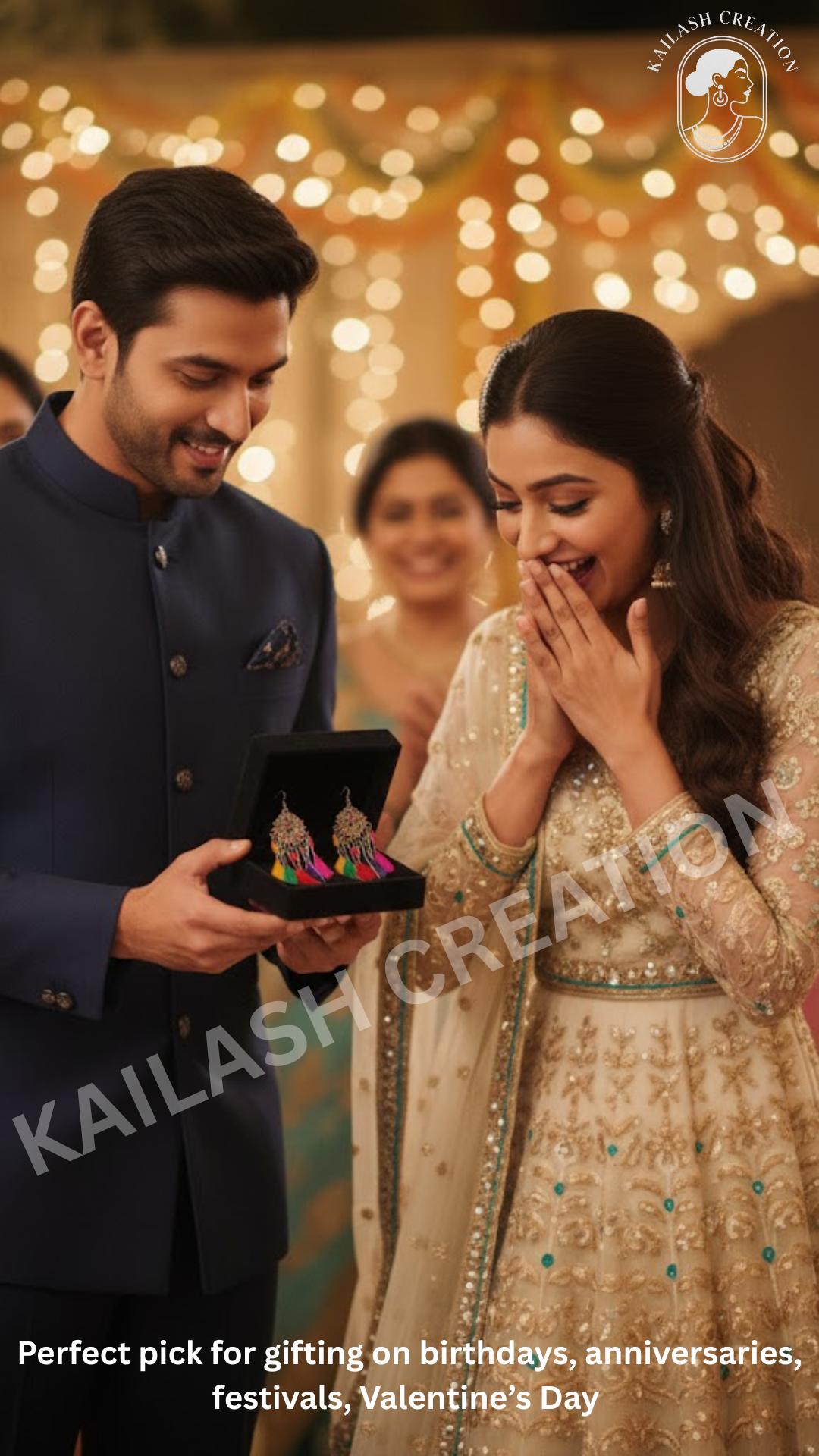 Kailash Creation Multicolor Boho Feather Jhumki Earrings – A Celebration of Color, Craft & Culture