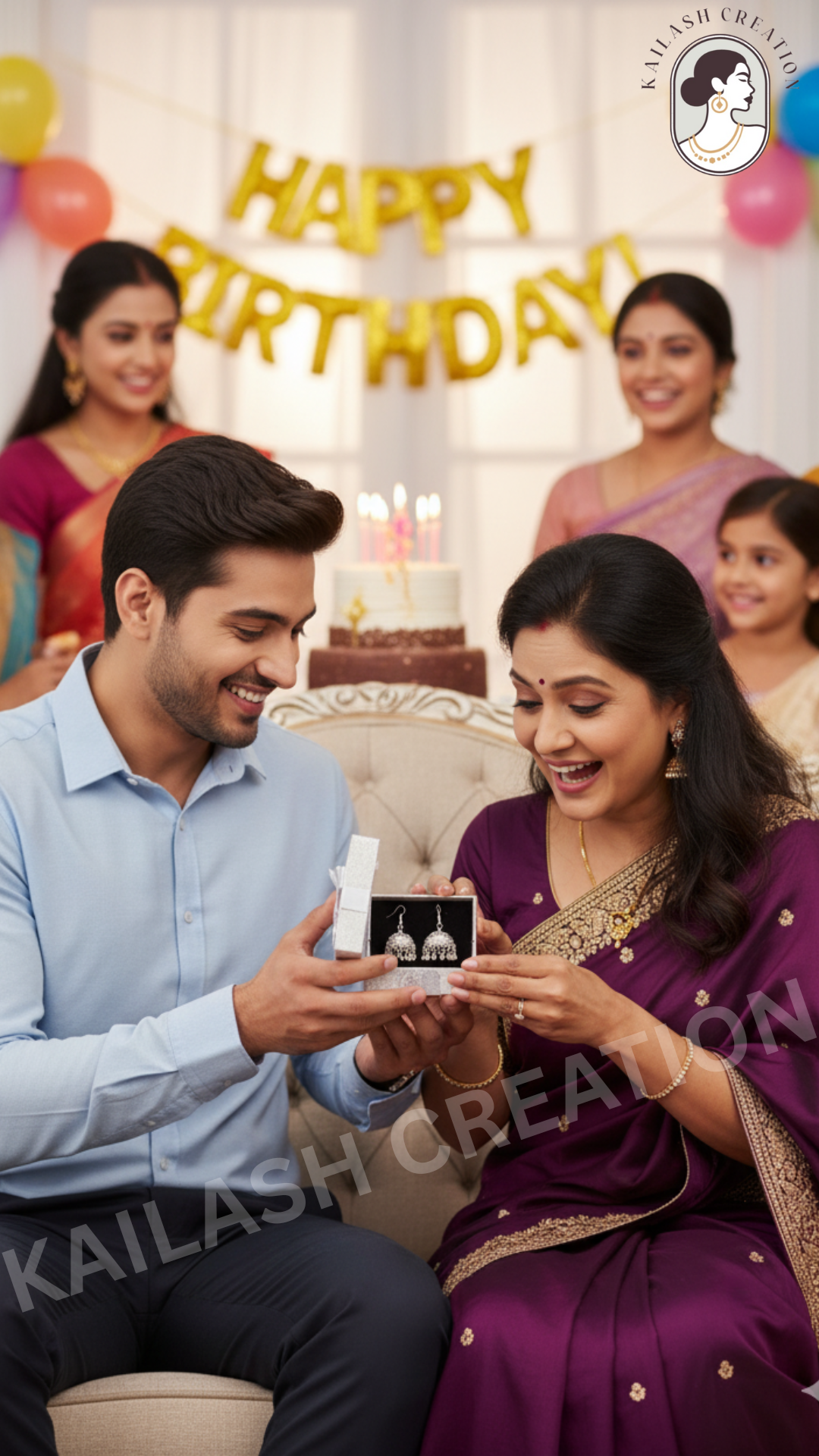 At Kailash Creation, we prioritize both beauty and durability. The earrings are built on a solid Alloy or Brass Base Metal, known for its strength and ability to hold the oxidized silver plating beautifully. They feature a secure push-back closure, ensuring they stay safely in place throughout your celebration. Invest in a pair of jhumkis that look expensive, feel luxurious, and are built to last.