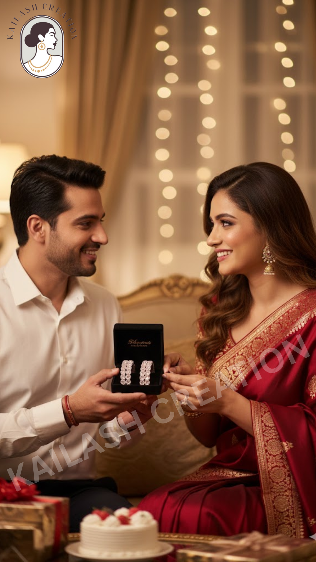 The Kailash Creation PearlAura Diamond Bangles Set of 4 is a perfect blend of elegance, tradition, and modern design. Crafted with sparkling crystal stones and delicate pearl beading, these bangles deliver a luxurious diamond-look finish ideal for weddings, parties, and festive occasions.