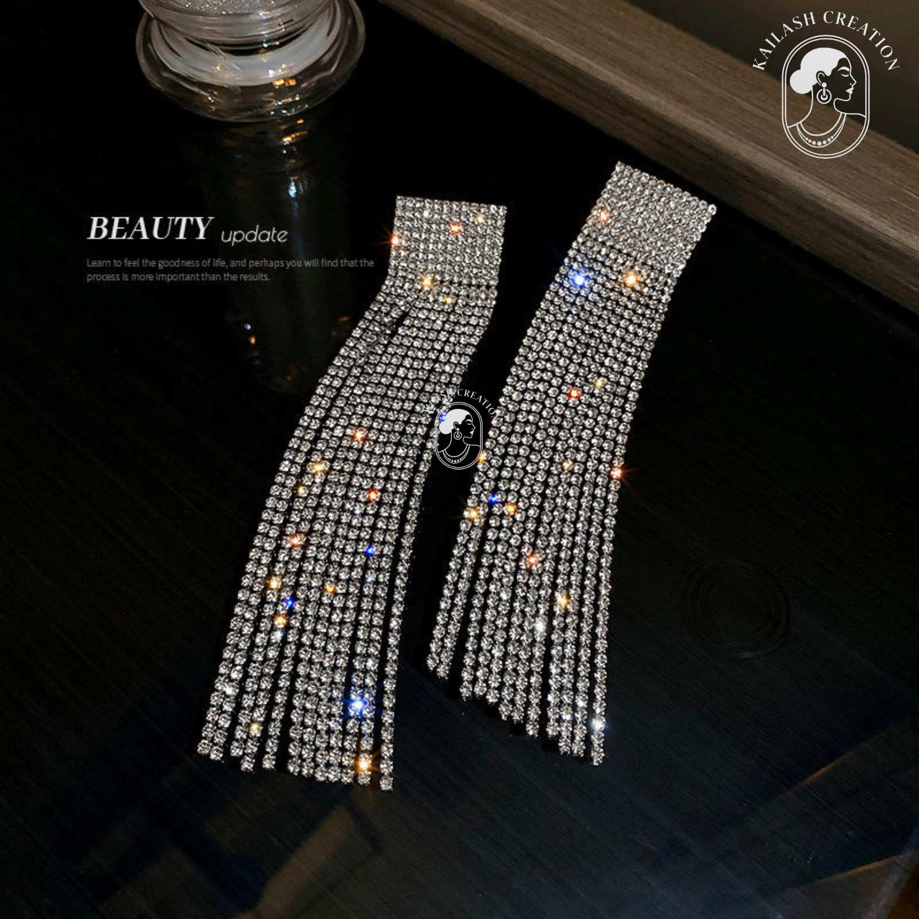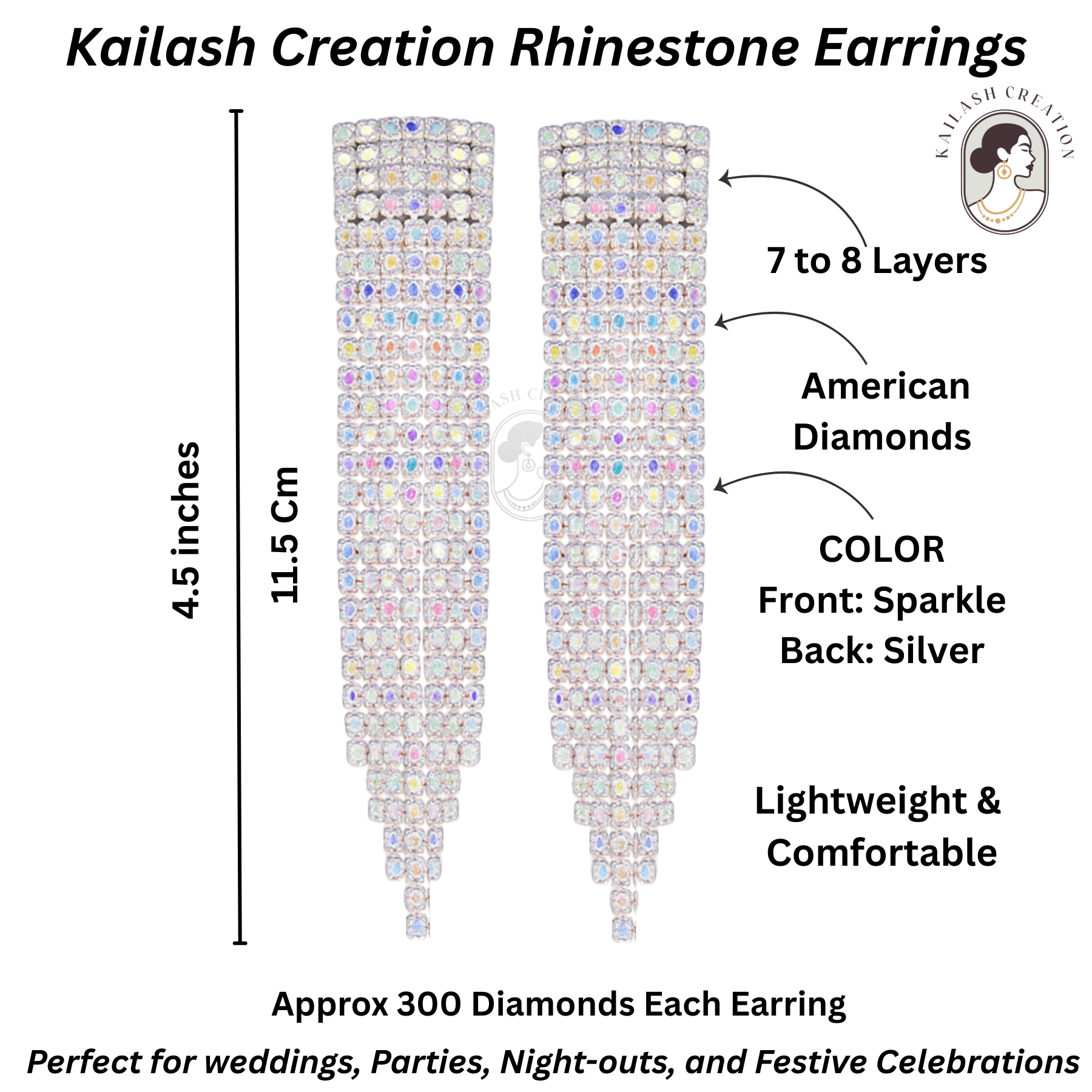 Kailash Creation Rhinestone Tassel Drop Chandelier Earrings – Sparkle that Defines Elegance