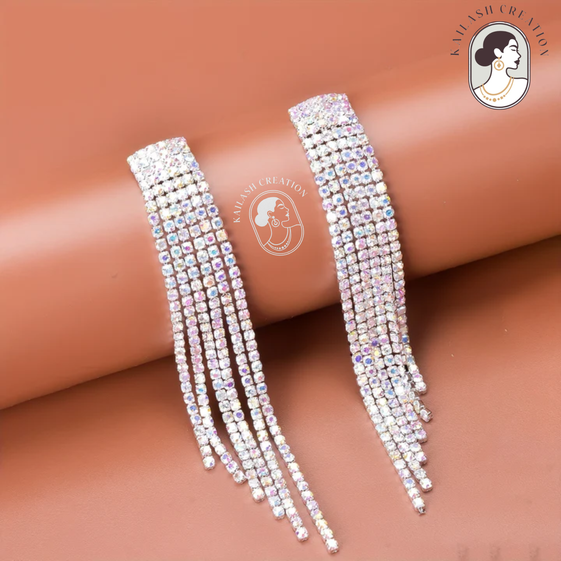 When it comes to adding timeless glamour and sparkle to your outfit, nothing speaks louder than a pair of dazzling rhinestone tassel earrings. Kailash Creation Rhinestone Drop Earrings are designed to make every woman feel confident, radiant, and stylish. Crafted with premium-quality rhinestones and safe-to-wear alloy, these earrings bring together comfort, elegance, and fashion in one accessory.