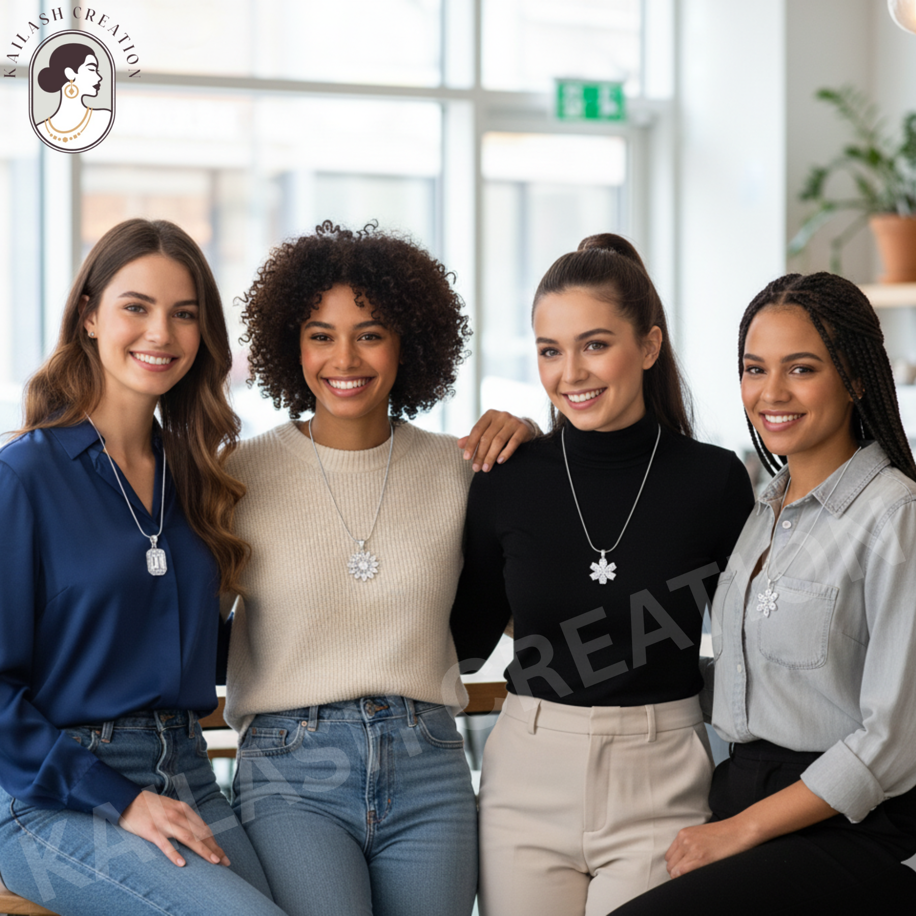 Discover the elegance of Kailash Creation with our stunning pendant necklaces featuring three unique designs โ Butterfly Grace, Blossom Flower, and Halo Spark. Each pendant reflects beauty, sophistication, and timeless craftsmanship.