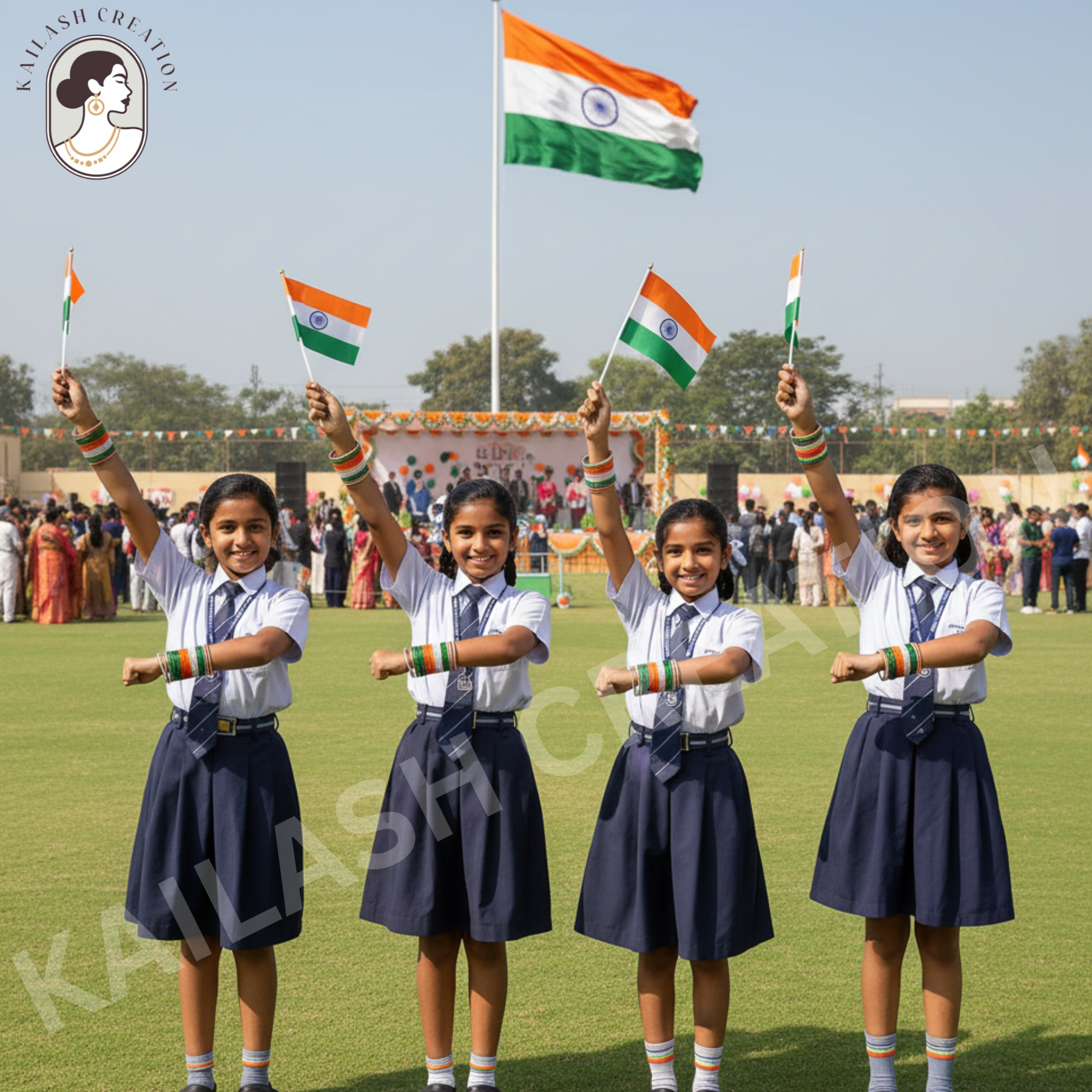 Kailash Creation introduces a premium range of Tricolor Metal Bangles, designed for patriotic occasions, including 15th August and 26th January. Crafted using high-quality alloy metal, these bangles offer durability, shine and smooth comfort.